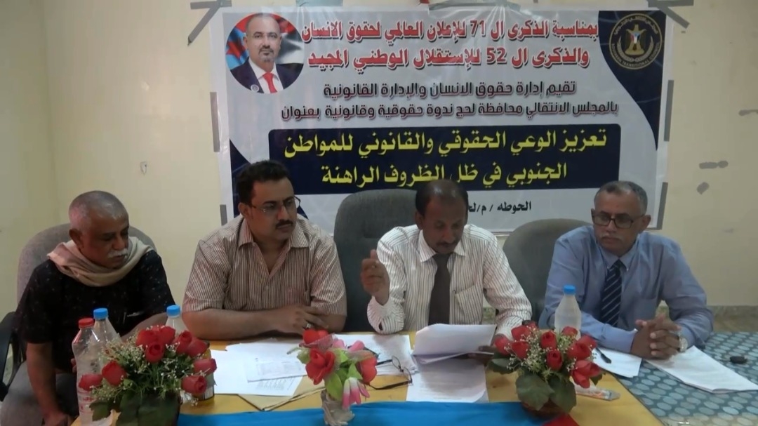 إدارتا حقوق الإنسان والقانونية بانتقالي لحج تنظمان ندوة متخصصة لتعزيز الوعي الحقوقي والقانوني للمواطن الجنوبي نظمت صباح إدارتا حقوق الإنسان والقانونية بالقيادة المجلية للمجلس الانتقالي بمحافظة لحج،أمس الخميس، و...