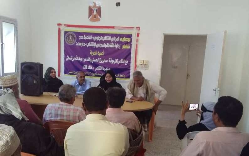 الإدارة الثقافية بانتقالي دارسعد تنظم أمسية شعرية نظمت الإدارة الثقافية بالقيادة المحلية للمجلس الانتقالي الجنوبي في مديرية دارسعد بالعاصمة عدن، عصر ا...