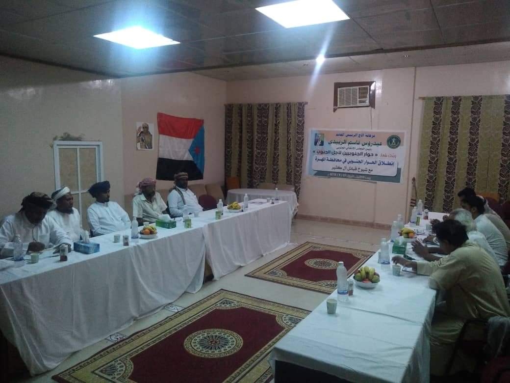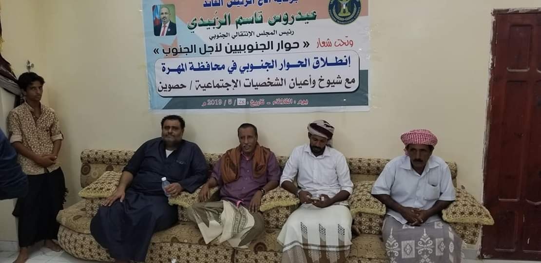 لجنة الحوار الجنوبي بانتقالي المهرة تلتقي شيوخ قبائل آل كثير بالمحافظة عقدت لجنة الحوار الجنوبي بالقيادة المحلية للمجلس الانتقالي الجنوبي في محافظة المهرة، مساء اليوم الاث...