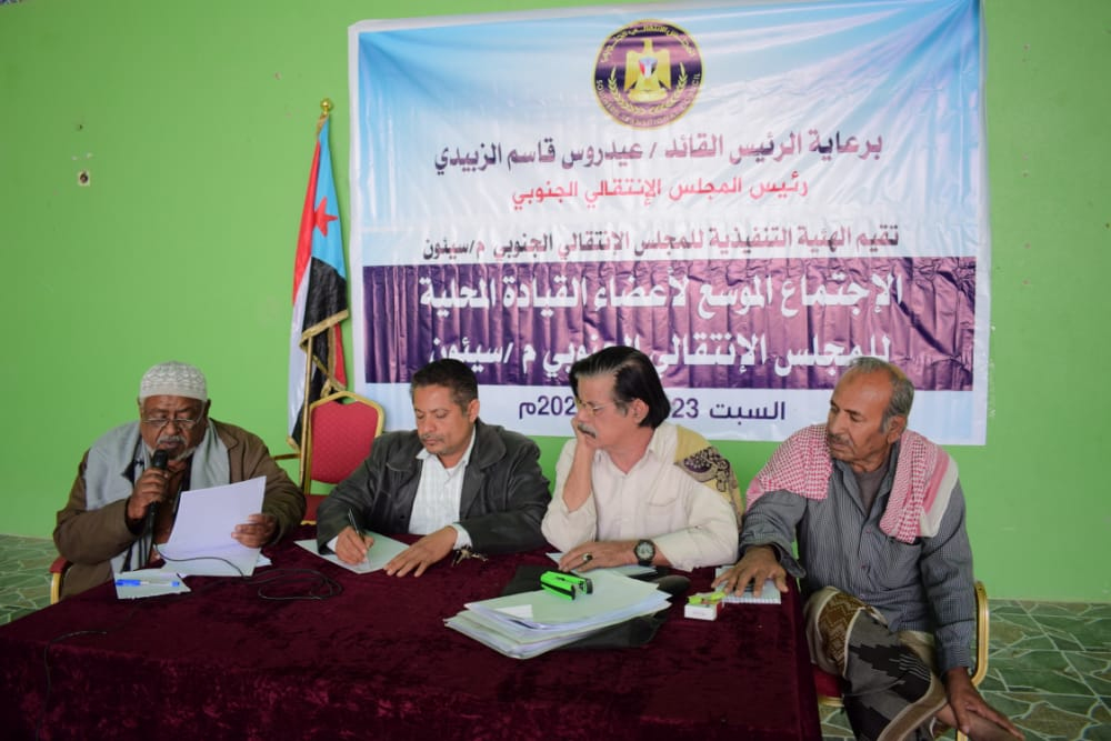 القيادة المحلية للمجلس الانتقالي بمديرية سيئون تعقد اجتماعها الدوري العام عقدت القيادة المحلية للمجلس الإنتقالي الجنوبي بمديرية سيئون، اليوم السبت، اجتماعها الدوري العام الرا...