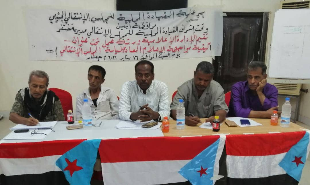 تنفيذية انتقالي خنفر تنظم ورشة عمل حول "كيفية مواجهة الإعلام المعادي" نظمت الهيئة التنفيذية للقيادة المحلية للمجلس الانتقالي الجنوبي بمديرية خنفر بمحافظة أبين، اليوم السب...