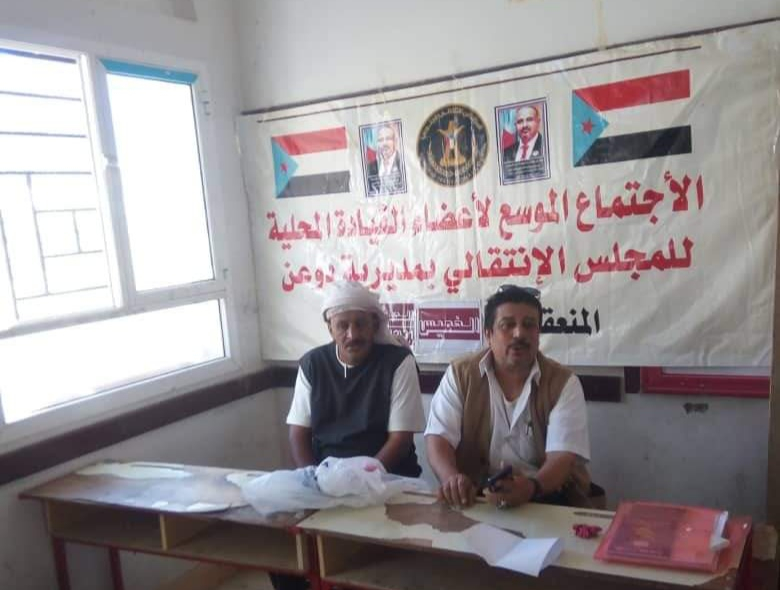 القيادة المحلية للمجلس الانتقالي بمديرية دوعن تعقد اجتماعها الموسع للعام 2020 عقدت القيادة المحلية للمجلس الانتقالي الجنوبي بمديرية دوعن بمحافظة حضرموت اليوم الخميس 31 ديسمبر 202...