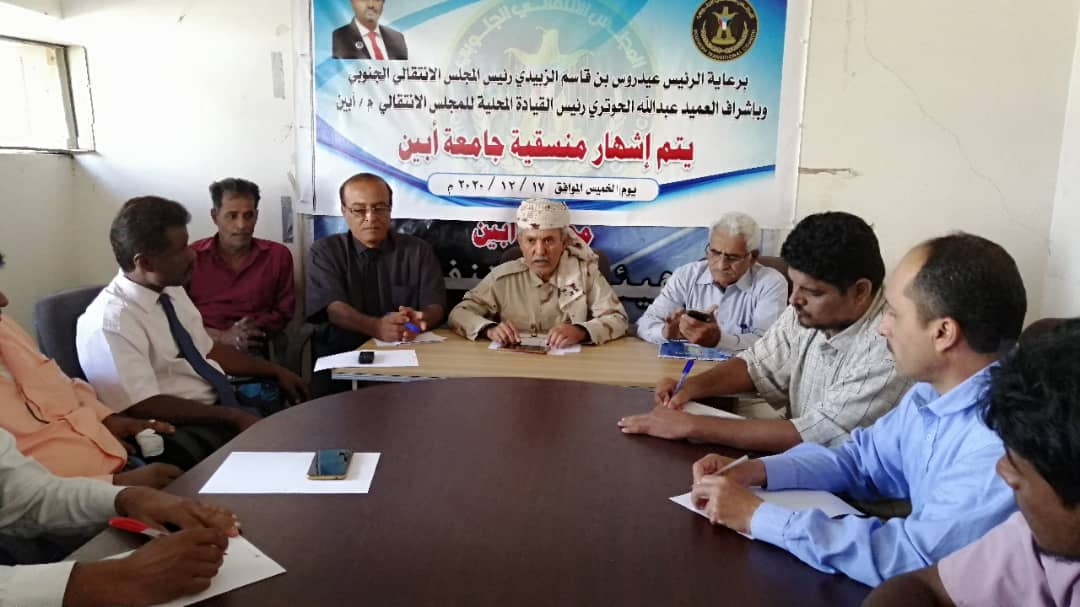 إشهار منسقية المجلس الانتقالي الجنوبي بجامعة أبين عقدت اللجنة التحضيرية لمنسقية جامعة أبين، صباح اليوم الخميس الاجتماع التأسيسي لإشهار منسقية المجلس ا...