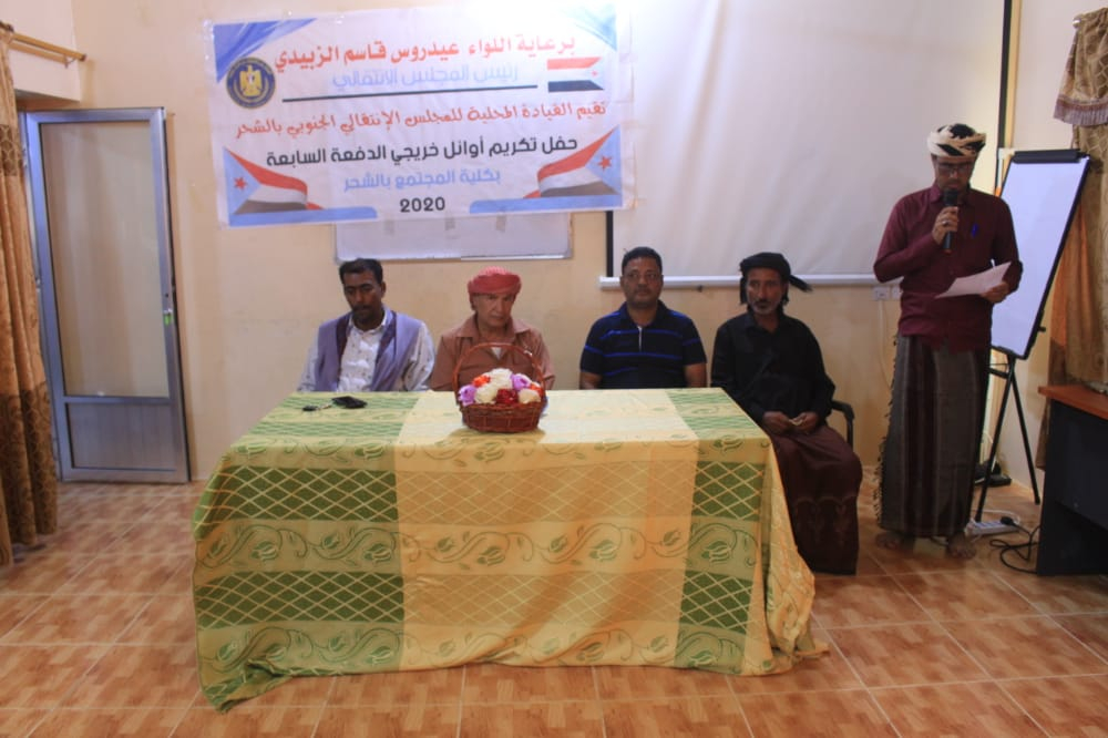 انتقالي الشحر يقيم حفلاً تكريماً لطالبات الدفعة السابعة بكلية المجتمع أقامت القيادة المحلية بالمجلس الانتقالي بمديرية الشحر وإدارة الشباب والطلاب، مساء الخميس، حفلاً تك...