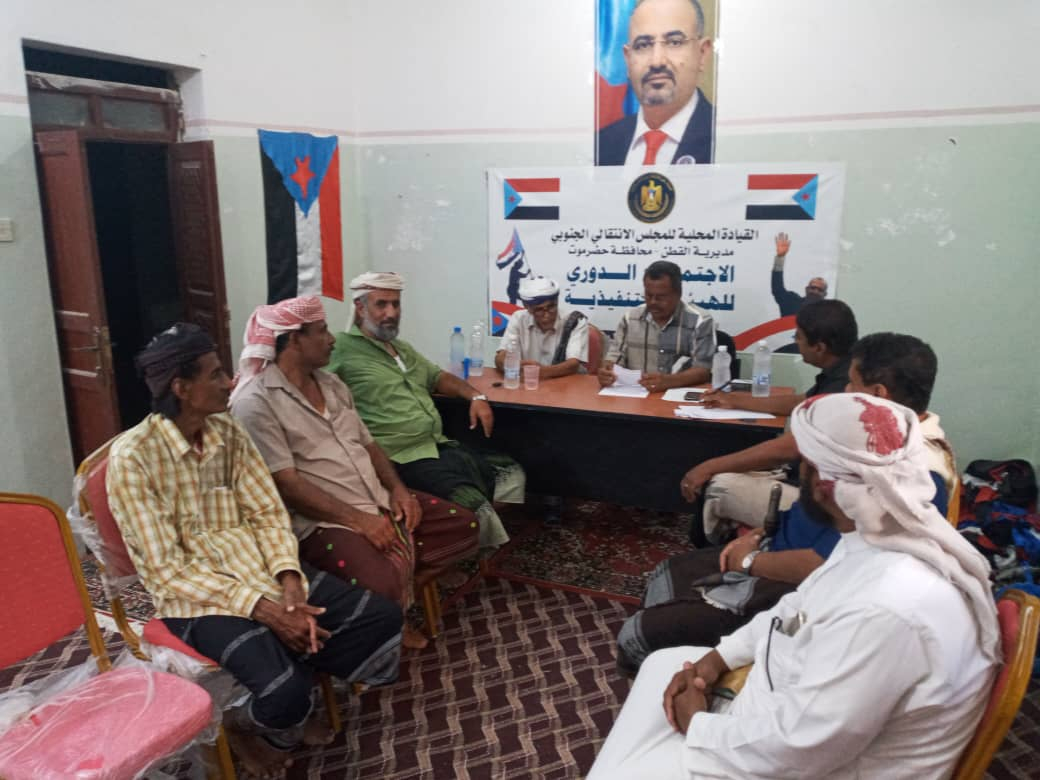 تنفيذية انتقالي القطن تقر تنفيذ نزولات ميدانية لجميع المراكز والالتقاء بالمواطنين عقدت الهيئة التنفيذية للقيادة المحلية للمجلس الانتقالي الجنوبي بمديرية القطن ، مساء اليوم السبت، اجت...