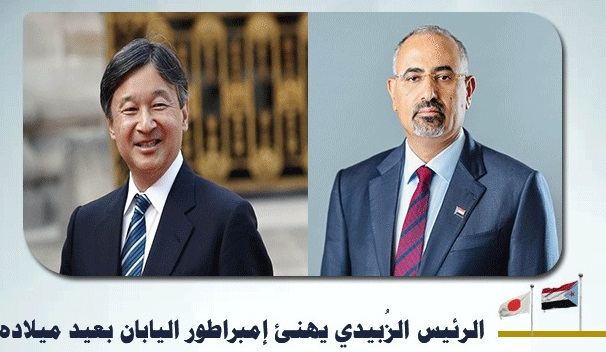 الرئيس الزُبيدي يهنئ إمبراطور اليابان بعيد ميلاده بعث الرئيس القائد عيدروس قاسم الزُبيدي رئيس المجلس الانتقالي الجنوبي، نائب رئيس مجلس القيادة الرئاسي...