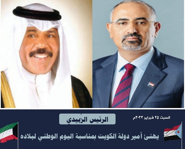الرئيس الزُبيدي يهنئ أمير دولة الكويت بمناسبة اليوم الوطني لبلاده الرئيس الزُبيدي يهنئ أمير دولة الكويت بمناسبة اليوم الوطني لبلاده