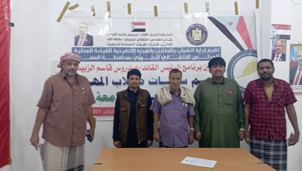 انتقالي المهرة يدشن مشروع الرئيس الزُبيدي لدعم سكن الطلاب الدارسين في عدن دشن الأستاذ حسان مهدي بلحاف نائب رئيس الهيئة التنفيذية للمجلس الانتقالي الجنوبي في محافظة المهرة، ال...