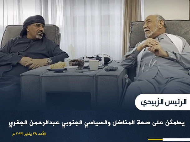 الرئيس الزُبيدي يطمئن على صحة المناضل والسياسي الجنوبي عبدالرحمن الجفري الرئيس الزُبيدي يطمئن على صحة المناضل والسياسي الجنوبي عبدالرحمن الجفري