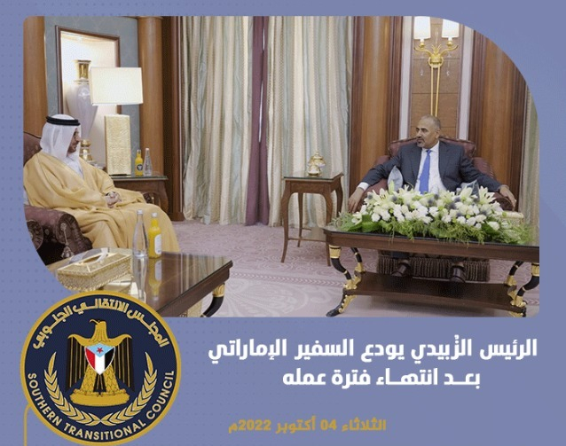 الرئيس الزُبيدي يودع السفير الإماراتي بعد انتهاء فترة عمله الرئيس الزُبيدي يودع السفير الإماراتي بعد انتهاء فترة عمله