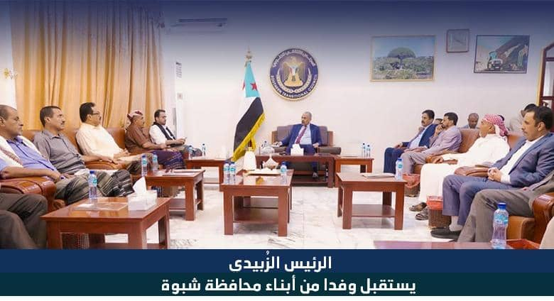 الرئيس الزُبيدي يستقبل وفدا من أبناء محافظة شبوة استقبل الرئيس القائد عيدروس قاسم الزُبيدي رئيس المجلس الانتقالي الجنوبي، نائب رئيس مجلس القيادة الرئ...