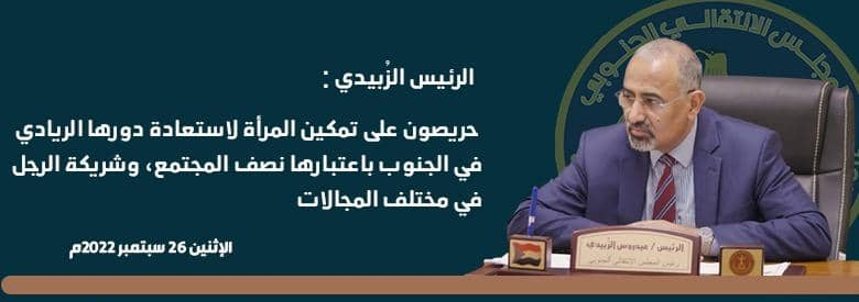 الرئيس الزُبيدي: حريصون على تمكين المرأة لاستعادة دورها الريادي في الجنوب الرئيس الزُبيدي: حريصون على تمكين المرأة لاستعادة دورها الريادي في الجنوب