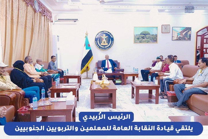 الرئيس الزُبيدي يلتقي قيادة النقابة العامة للمعلمين والتربويين الجنوبيين ويشدد على سرعة استئناف العملية التعليمية الرئيس الزُبيدي يلتقي قيادة النقابة العامة للمعلمين والتربويين الجنوبيين ويشدد على سرعة استئناف العم...