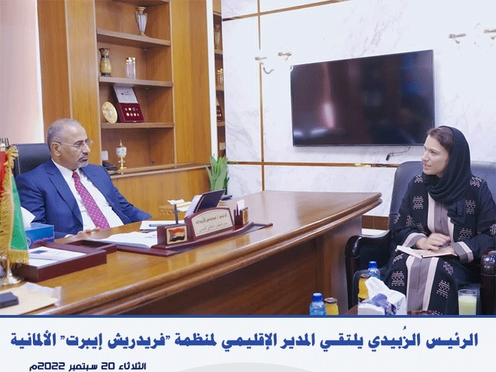الرئيس الزُبيدي يلتقي المدير الإقليمي لمنظمة "فريدريش إيبرت" الألمانية الرئيس الزُبيدي يلتقي المدير الإقليمي لمنظمة "فريدريش إيبرت" الألمانية