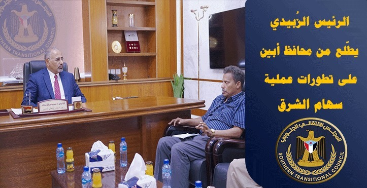 الرئيس الزُبيدي يطّلع من محافظ أبين على تطورات عملية سهام الشرق وجهود تطبيع الحياة بالمحافظة الرئيس الزُبيدي يطّلع من محافظ أبين على تطورات عملية سهام الشرق وجهود تطبيع الحياة بالمحافظة