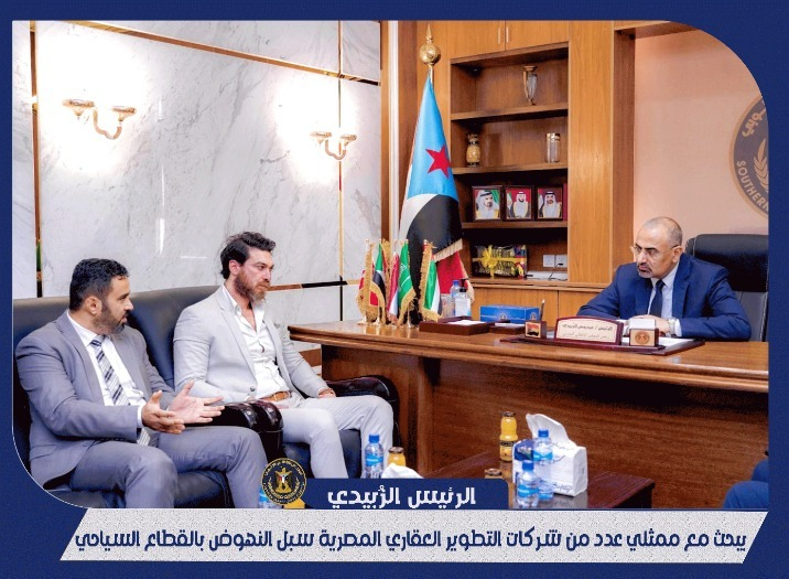 الرئيس الزُبيدي يبحث مع ممثلي عدد من شركات التطوير العقاري المصرية سُبل النهوض بالقطاع السياحي الرئيس الزُبيدي يبحث مع ممثلي عدد من شركات التطوير العقاري المصرية سُبل النهوض بالقطاع السياحي