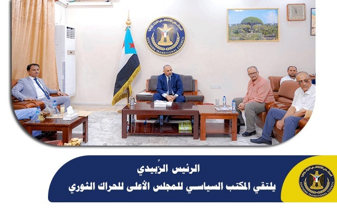 الرئيس الزُبيدي يلتقي المكتب السياسي للمجلس الأعلى للحراك الثوري الرئيس الزُبيدي يلتقي المكتب السياسي للمجلس الأعلى للحراك الثوري