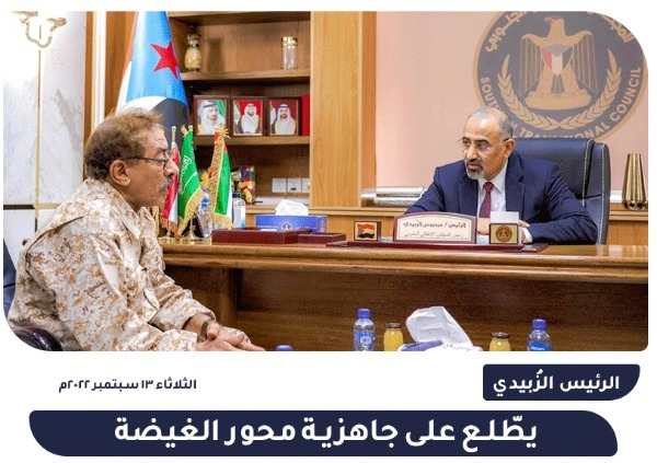 الرئيس الزُبيدي يطّلع على جاهزية محور الغيضة التقى الرئيس القائد عيدروس قاسم الزُبيدي رئيس المجلس الانتقالي الجنوبي، القائد الأعلى للقوات المسلحة...
