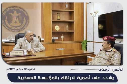 الرئيس الزُبيدي يشدد على أهمية الارتقاء بالمؤسسة العسكرية الرئيس الزُبيدي يشدد على أهمية الارتقاء بالمؤسسة العسكرية