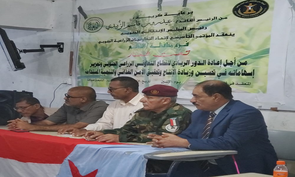 برعاية الرئيس الزُبيدي.. انعقاد المؤتمر التأسيسي لاتحاد التعاونيات الزراعية الجنوبي بمحافظة الضالع عقد اليوم الاثنين، المؤتمر التأسيسي لاتحاد التعاونيات الزراعية الجنوبي فرع الضالع، تحت شعار "من أجل...