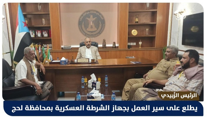 الرئيس الزُبيدي يطلع على سير العمل بجهاز الشرطة العسكرية بمحافظة لحج الرئيس الزُبيدي يطلع على سير العمل بجهاز الشرطة العسكرية بمحافظة لحج