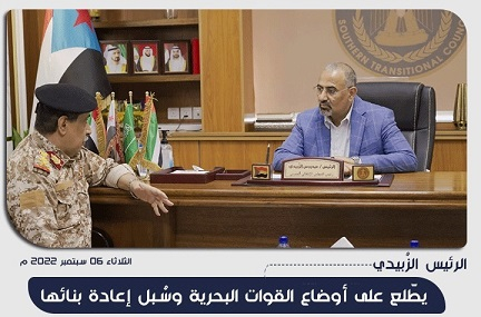 الرئيس الزُبيدي يطّلع على أوضاع القوات البحرية وسُبل إعادة بنائها الرئيس الزُبيدي يطّلع على أوضاع القوات البحرية وسُبل إعادة بنائها