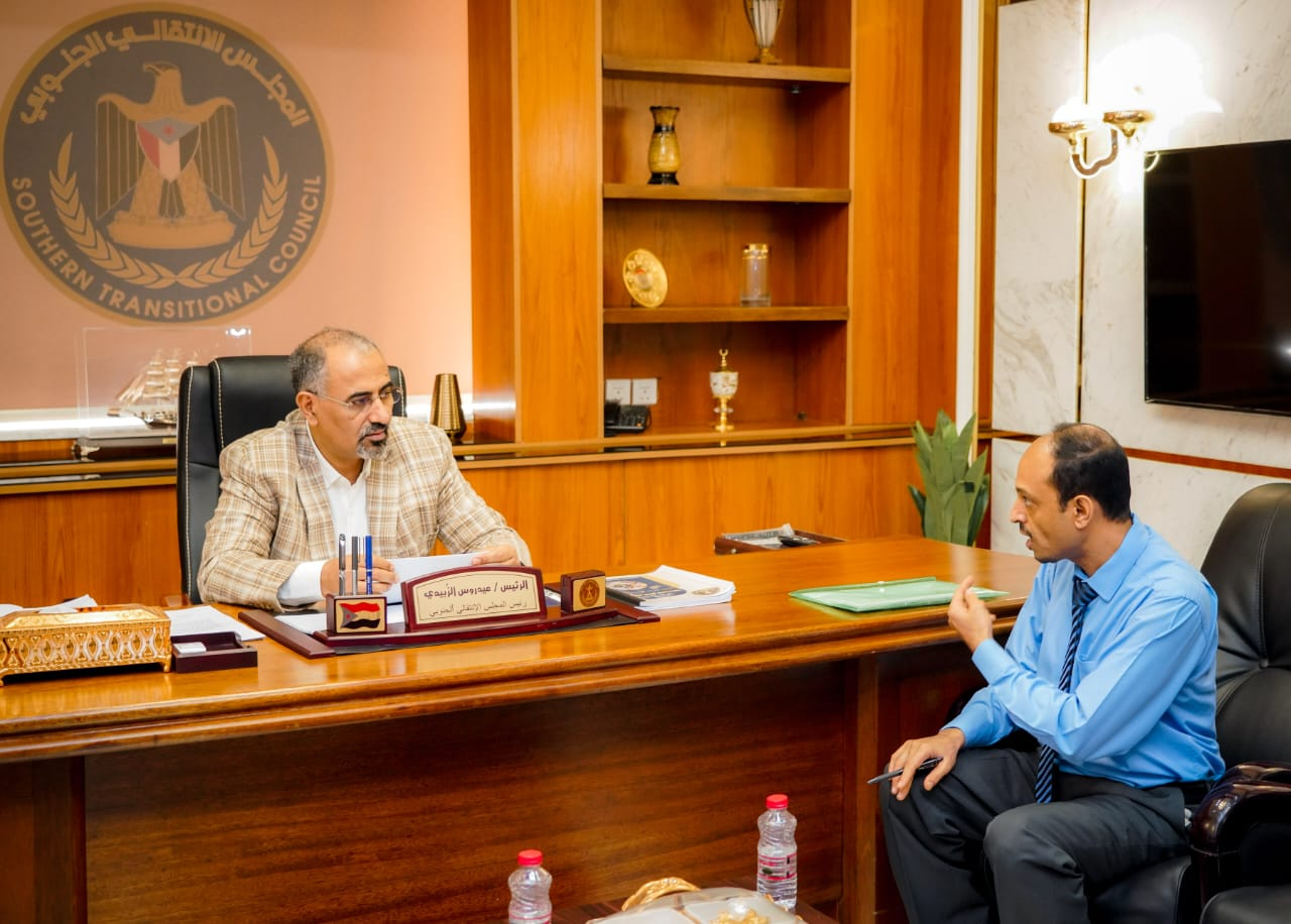 الرئيس الزُبيدي يلتقي المدير التنفيذي لشركة النفط التقى الرئيس القائد عيدروس قاسم الزُبيدي رئيس المجلس الانتقالي الجنوبي، نائب رئيس مجلس القيادة الرئا...