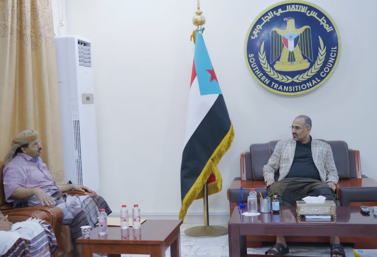 الرئيس الزُبيدي يستقبل وفدا من أبناء محافظة البيضاء برئاسة المحافظ السوادي استقبل الرئيس القائد عيدروس قاسم الزُبيدي رئيس المجلس الانتقالي الجنوبي، نائب رئيس مجلس القيادة الرئ...