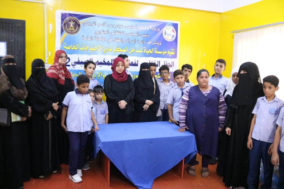 برعاية الرئيس الزُبيدي.. مؤسسة الحياة تختتم فعاليات مخيمها الصيفي الثاني نظمت مؤسسة الحياة للتدخل المبكر لذوي الاحتياجات الخاصة، اليوم الأحد، حفلا فنيا بمناسبة ختام فع...