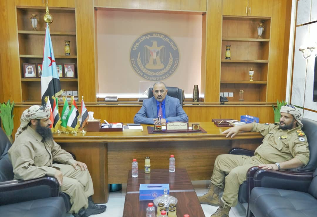 الرئيس القائد عيدروس الزُبيدي يلتقي عدداً من القيادات العسكرية والوجهاء والشخصيات الاجتماعية من أبناء محافظة أبين التقى الرئيس القائد عيدروس الزُبيدي رئيس المجلس الانتقالي الجنوبي، اليوم الأحد في مقر المجلس الانتقا...