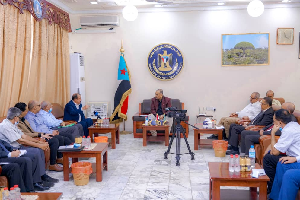 الرئيس الزُبيدي يعقد لقاءً مشتركاً مع الوفد التفاوضي ورؤساء دوائر الأمانة ولجان الجمعية الوطنية عقد الرئيس القائد عيدروس قاسم الزُبيدي رئيس المجلس الانتقالي الجنوبي، اليوم السبت في مقر المجلس، لقا...