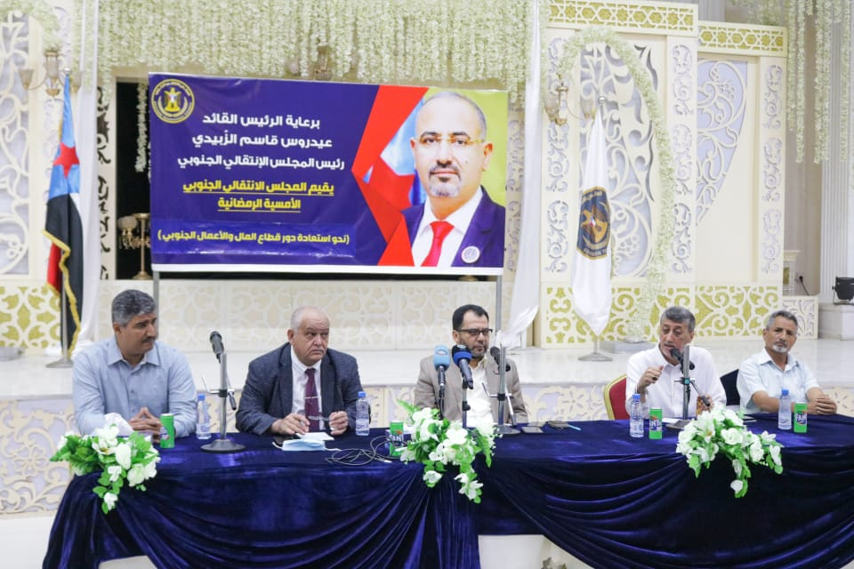 المجلس الانتقالي الجنوبي يُقيم أمسية رمضانية لرجال وسيدات المال والأعمال بالعاصمة عدن أقام المجلس الانتقالي الجنوبي اليوم الجمعة بالعاصمة عدن، أمسية رمضانية برعاية الرئيس القائد عيدروس ق...