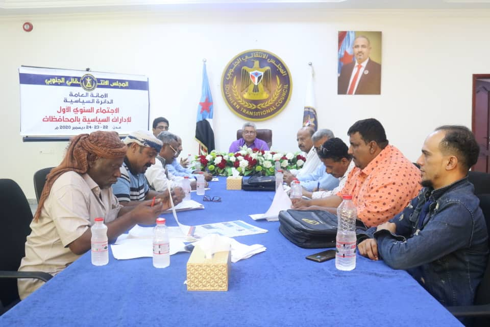 الدائرة السياسية تدشن جلسات اجتماعها السنوي لمناقشة تقارير الإدارات بالمحافظات بدأت الدائرة السياسية في الأمانة العامة لهيئة رئاسة المجلس الانتقالي الجنوبي، اليوم الثلاثاء بالعاصم...