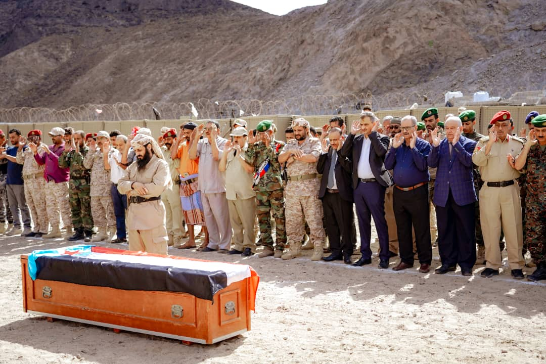 الأمين العام وأعضاء هيئة رئاسة المجلس وقيادات عسكرية وأمنية يؤدون صلاة الجنازة على جثمان شهيد الواجب العميد ناصر الرضامي أدّى الأستاذ أحمد حامد لملس الأمين العام لهيئة رئاسة المجلس الانتقالي الجنوبي، محافظ العاصمة عدن، وع...