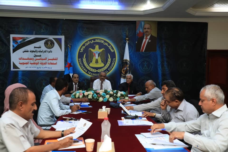 دائرة الدراسات والبحوث تقيم ملتقى حول "المتغير السياسي و ممهدات استعادة الدولة الوطنية الجنوبية" أقامت دائرة الدراسات والبحوث في الأمانة العامة لهيئة رئاسة المجلس الانتقالي الجنوبي، اليوم الأحد، مل...