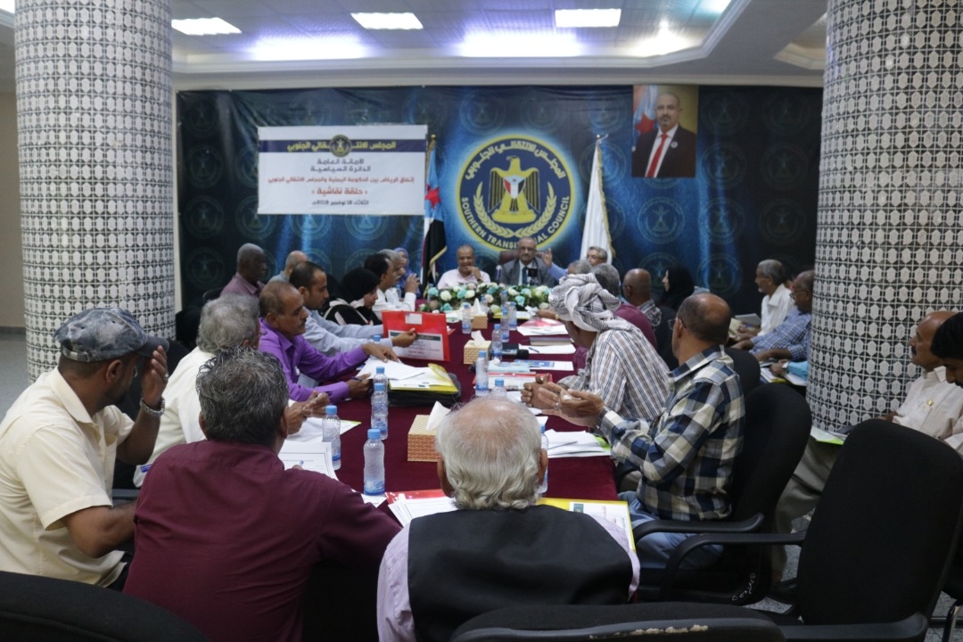 الدائرة السياسية تنظم حلقة نقاشية حول "اتفاق الرياض بين المجلس الانتقالي والحكومة اليمنية" نظمت الدائرة السياسية في الأمانة العامة لهيئة رئاسة المجلس الانتقالي الجنوبي، اليوم الثلاثاء بالعاصم...