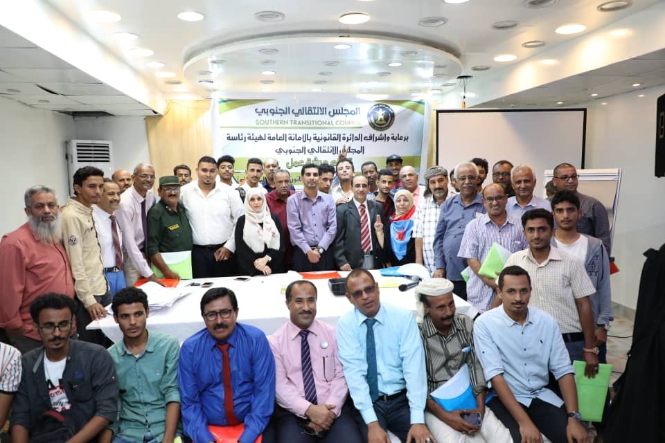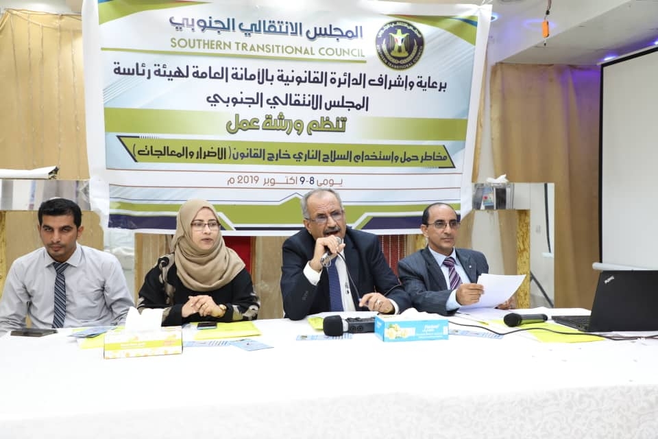 الدائرة القانونية تنظم ورشة عمل حول "مخاطر حمل السلاح الناري خارج القانون" نظمت الدائرة القانونية في الأمانة العامة لهيئة رئاسة المجلس الانتقالي الجنوبي، اليوم الثلاثاء في الع...