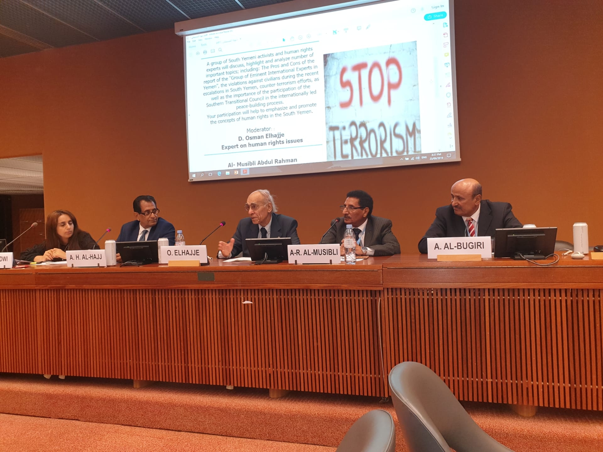 الفريق الحقوقي التابع للانتقالي ينظم ندوة حقوقية على هامش الدورة الـ ٤٢ لمجلس الأمم المتحدة لحقوق الإنسان بجنيف نظم الفريق الحقوقي التابع للمجلس الانتقالي المشارك في الدورة الـ ٤٢ لمجلس الأمم المتحدة لحقوق الإنسا...