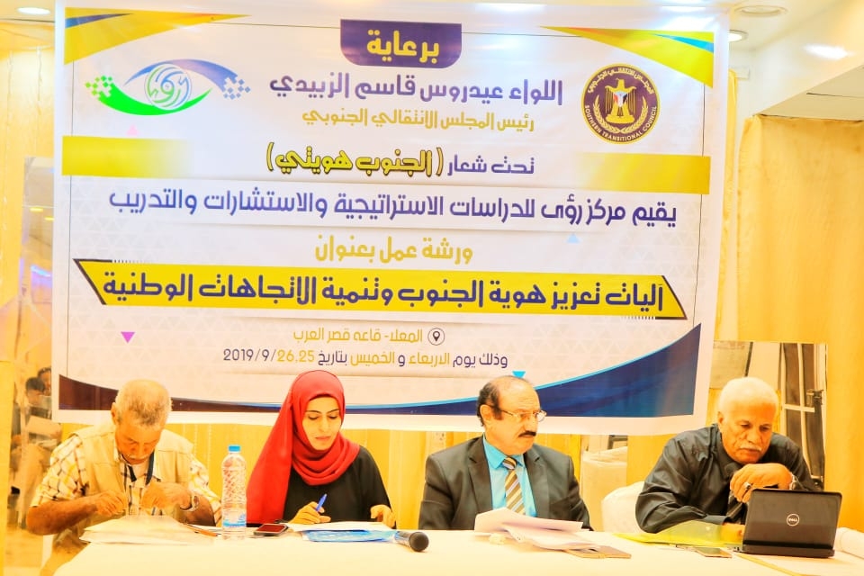 مركز رؤى للدراسات يدشن ورشة عمل حول "آليات تعزيز هوية الجنوب" برعاية المجلس الانتقالي دشن مركز رؤى للدراسات الإستراتيجية و الإستشارات والتدريب، صباح اليوم الأربعاء، ورشة عمل حول "آليات ت...
