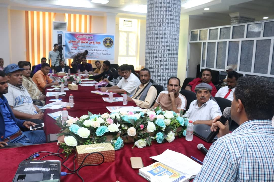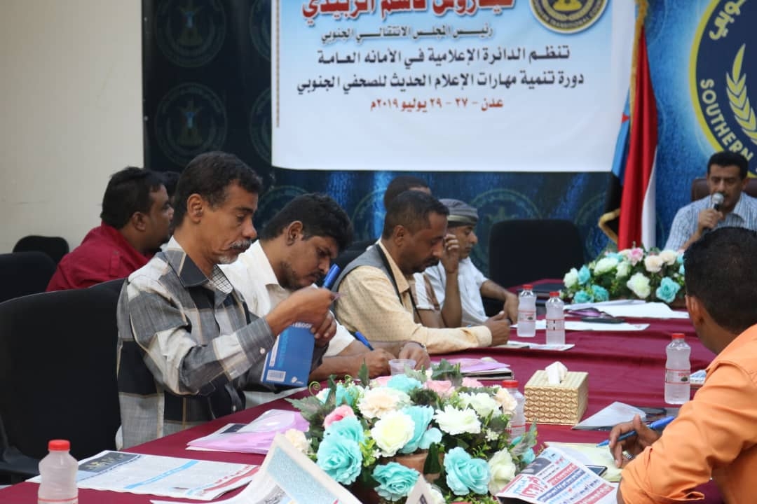 تواصلت اليوم الأحد، أعمال الدورة التدريبية لتنمية مهارات الإعلام الحديث للصحفي الجنوبي، التي تنظمها الدائرة الإعلامية في الأمانة العامة لهيئة رئاسة المجلس الانتقالي الجنوبي.