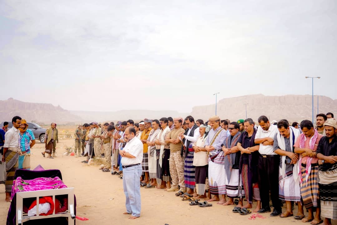 وتقدم جموع المشيّعين الأستاذ أحمد حامد لملس الأمين العام لهيئة رئاسة المجلس الانتقالي، والأستاذ سالم ثابت العولقي، عضو هيئة رئاسة المجلس، والشيخ علي محسن السليماني، رئيس القيادة المحلية للمجلس الانتقالي في محافظة شبوة، والمحامي رمزي الشعيبي، رئيس القيادة المحلية للمجلس بمحافظة لحج، ومنصور زيد، رئيس الدائرة التنظيمية في الأمانة العامة لهيئة الرئاسة، والمقدم محمد البوحر قائد اللواء الثاني نخبة شبوانية، والقائد ماجد لمروق قائد اللواء السابع نخبة شبوانية، والمقدم وجدي باعوم قائد اللواء الرابع نخبة شبوانية، وعدد من القيادات العسكرية والإدارية والوجاهات الاجتماعية.