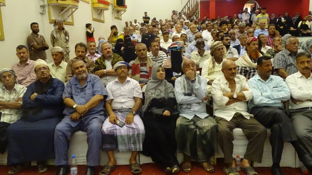 وكان الدكتور عصام عبده نائب رئيس القيادة المحلية للمجلس الانتقالي الجنوبي في العاصمة عدن، قد افتتح الاجتماع بالترحيب بالحضور مؤكداً على ضرورة عكس المدلولات السياسية والمجتمعية للتعبير عن رفض الإرهابيين وتأييد شعب الجنوب للجهود المبذولة من التحالف في مكافحة الإرهاب.