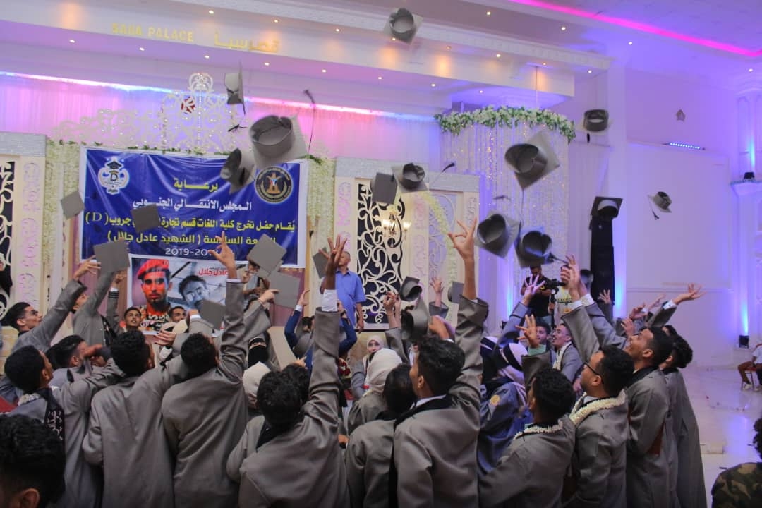 احتفلت كلية اللغات بجامعة عدن، اليوم الأربعاء، بتخرج الدفعة السادسة (دفعة الشهيد عادل جلال) قسم إنجليزي تجاري (Group D)، برعاية كريمة من المجلس الانتقالي الجنوبي.