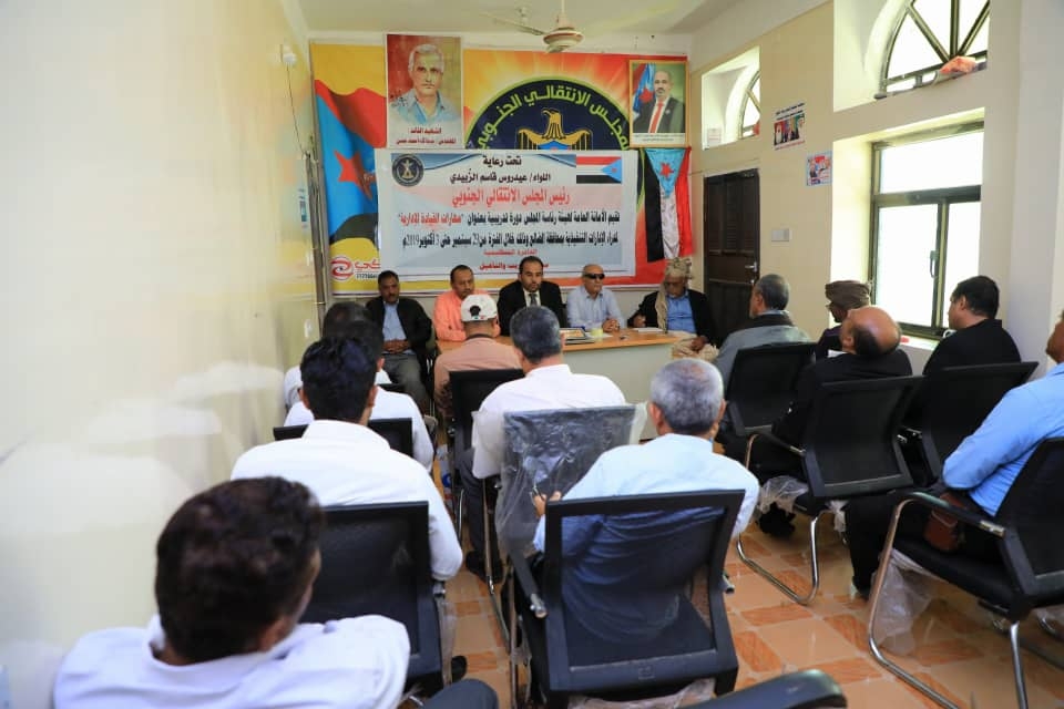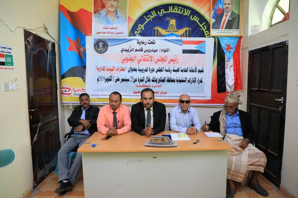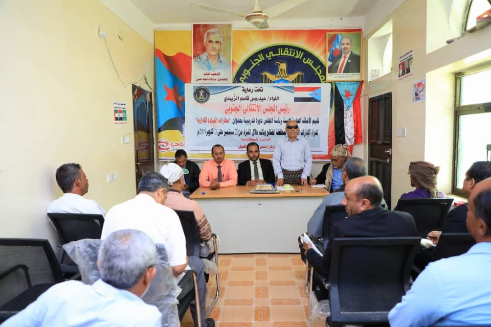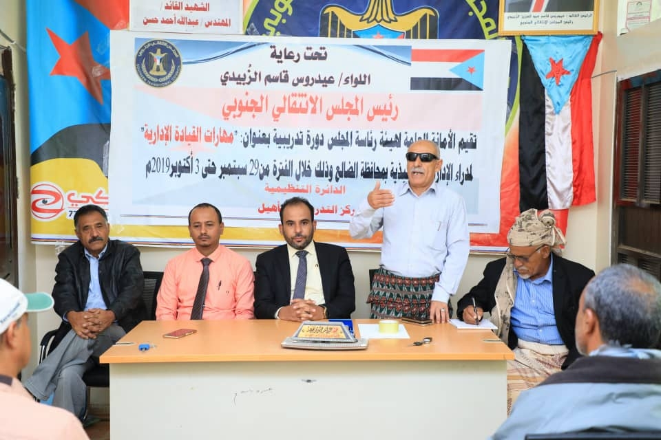 دشنت الدائرة التنظيمية في الأمانة العامة لهيئة رئاسة المجلس الانتقالي الجنوبي، صباح اليوم الأحد، دورة تدريبية في مهارات القيادة الإدارية، لمدراء الإدارات التنفيذية في القيادة المحلية للمجلس بمحافظة الضالع.
