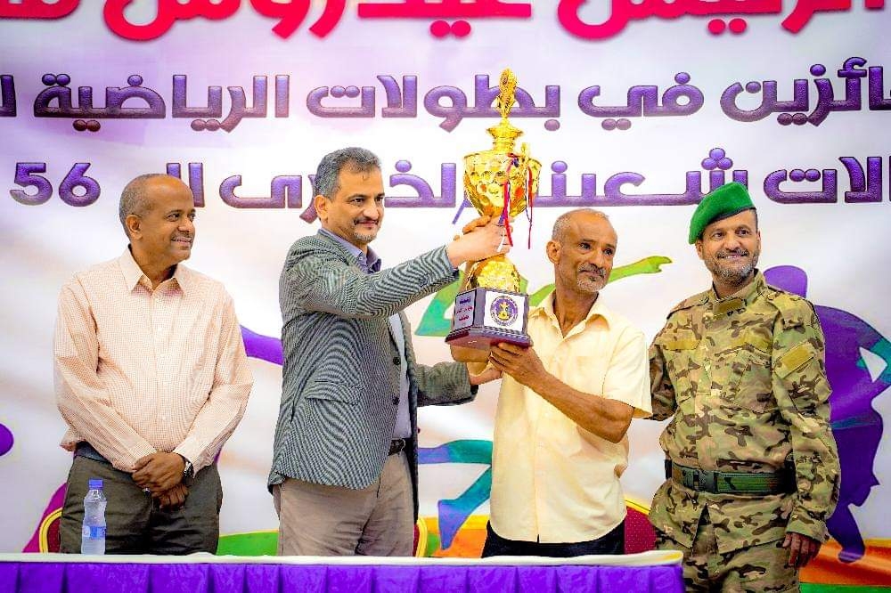 وشهد الحفل تكريم وتسليم فريق نادي الميناء الرياضي كأس بطل مسابقة كرة القدم في المهرجان الرياضي، وتكريم نادي وحدة عدن بكأس الوصيف.
