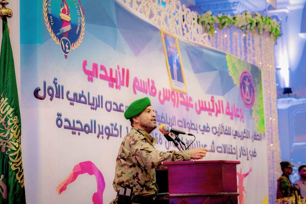 وألقى اللواء شلال علي شائع، كلمة أكد فيها أن مايحصل اليوم من تكريم للفائزين في مهرجان عدن الرياضي الأول الذي نظمه المجلس الانتقالي الجنوبي بنجاح، هو امتداد للتاريخ الرياضي الكروي للجنوب، مشيراً إلى أن الرياضة بشكل عام لها دور كبير مع المؤسسات الأمنية في تجنيب الشباب ويلات التطرف وفي اجتثاث الإرهاب.