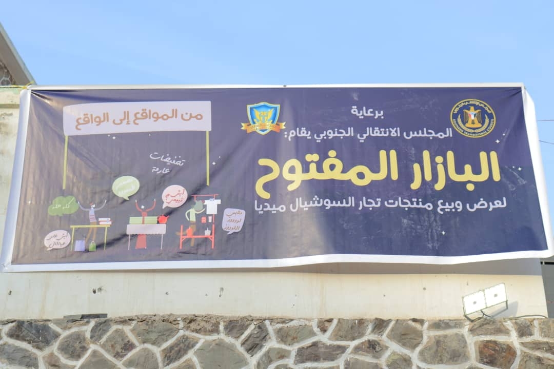 نظم المجلس العزابي، اليوم السبت، بازاراً مفتوحا لعرض وبيع منتجات تجّار السوشيال ميديا، وذلك في ساحة منارة عدن التاريخية، برعاية كريمة من المجلس الانتقالي الجنوبي .