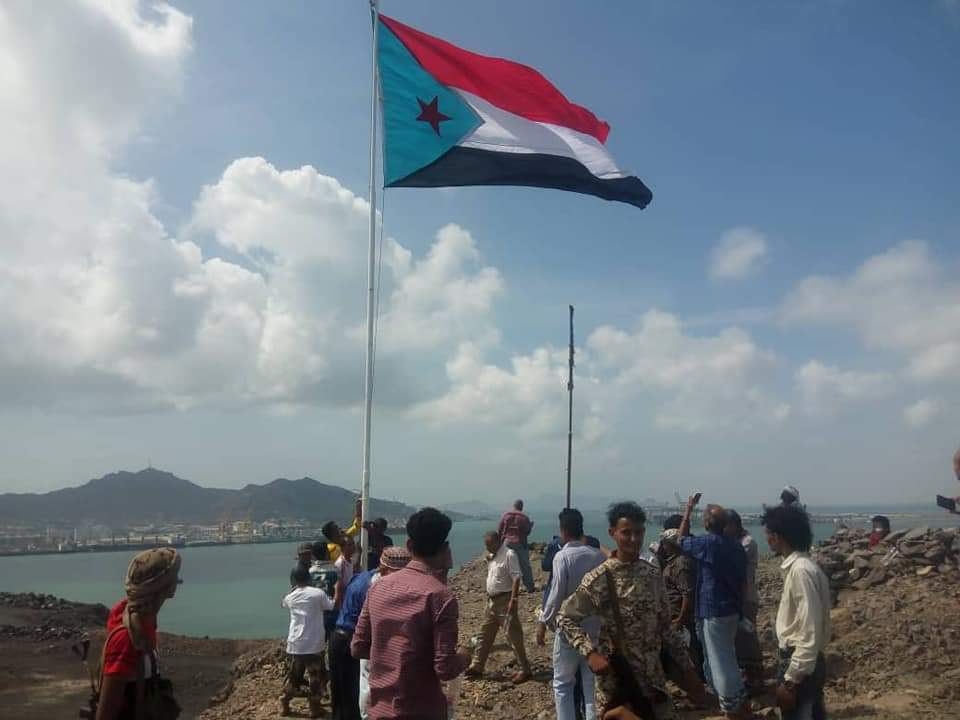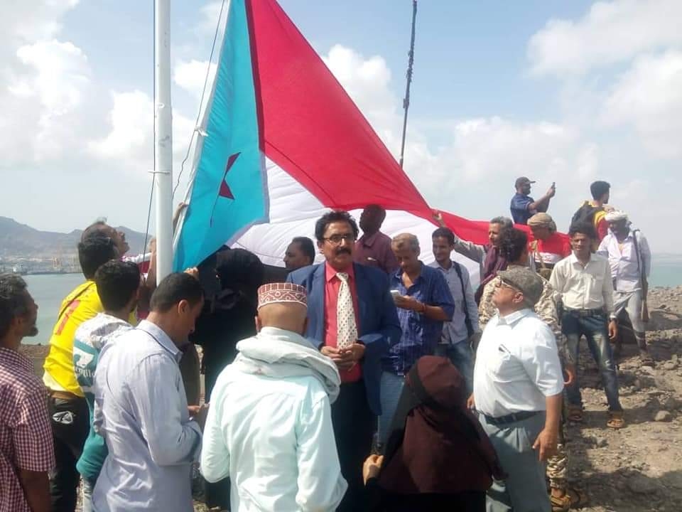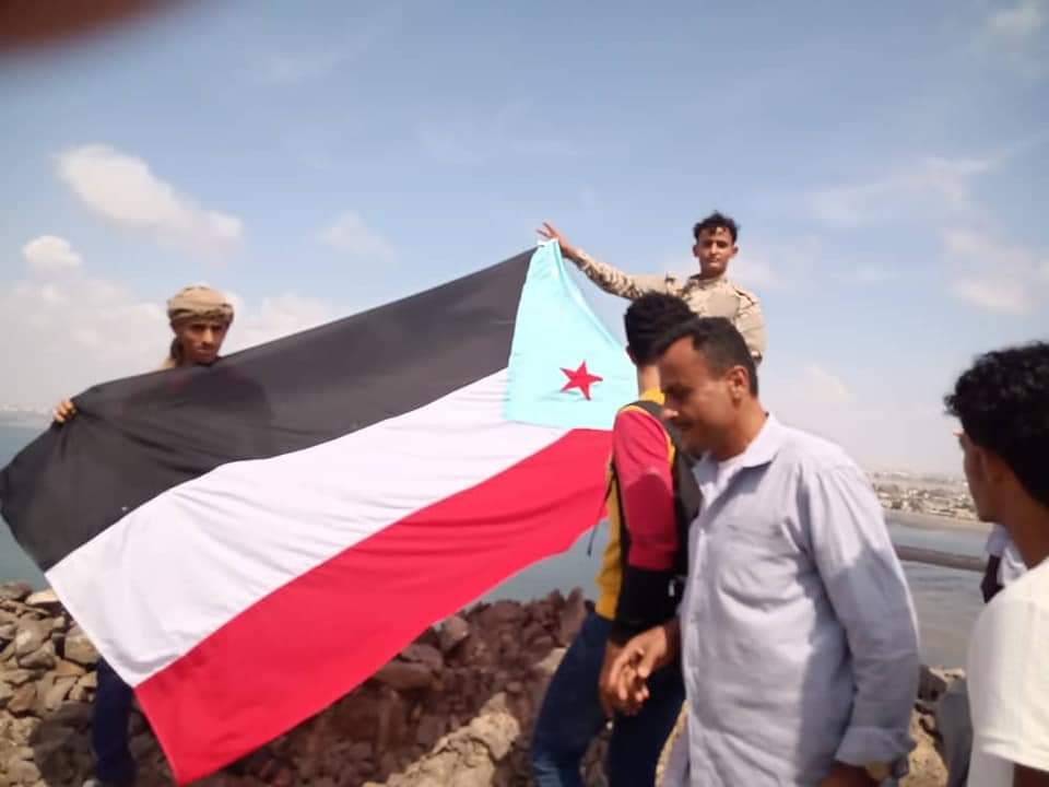 رفع المجلس الانتقالي الجنوبي، اليوم الإثنين، بسارية عملاقة، علم دولة الجنوب أعلى جبل جزيرة العمال بمديرية خورمكسر بالعاصمة عدن .