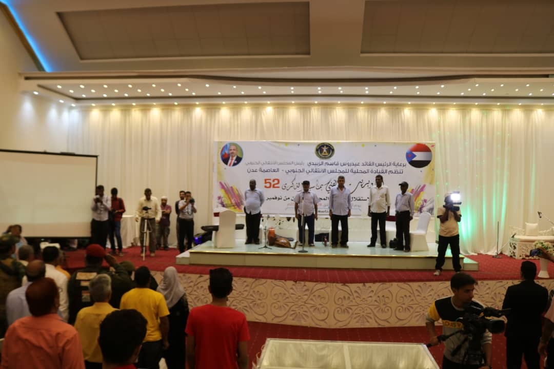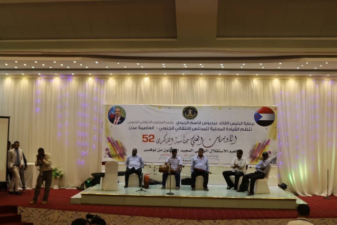 نظمت القيادة المحلية للمجلس بالعاصمة عدن، اليوم الخميس الأوبريت الفني الذي حمل عنوان "إرادة شعب"، وذلك بمناسبة الذكرى 52 للاستقلال المجيد 30 نوفمبر، برعاية كريمة من الرئيس القائد عيدروس قاسم الزبيدي، رئيس المجلس الانتقالي الجنوبي.