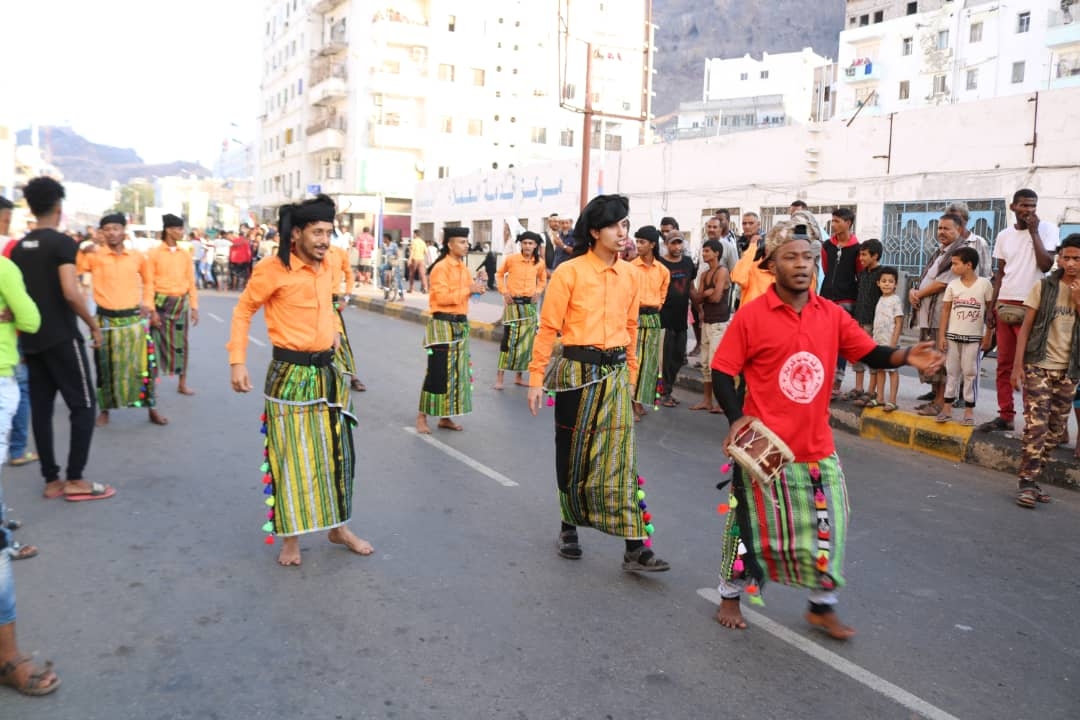 وشمل الكرنفال رقصات شعبية للفرق الشعبية عبرت من خلالها عن الموروث الثقافي لكل محافظات الجنوب، وجابت الفرق شارع الشهيد مدرم وصولاٌ إلى جولة حجيف بالمديرية .